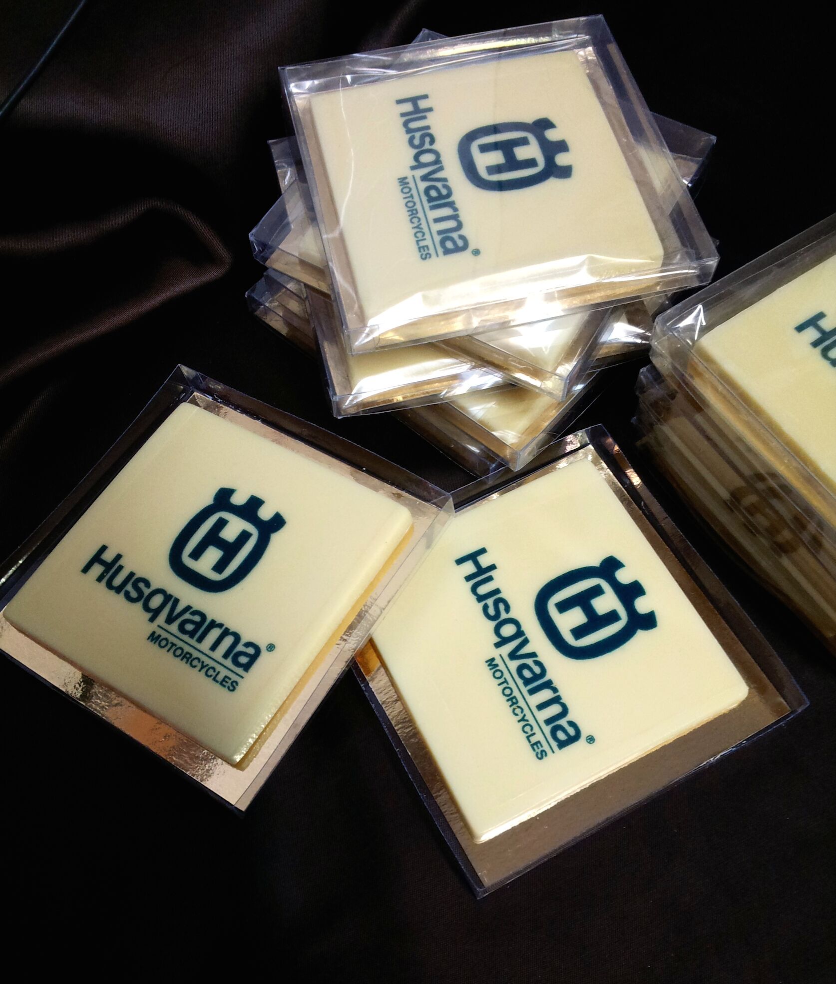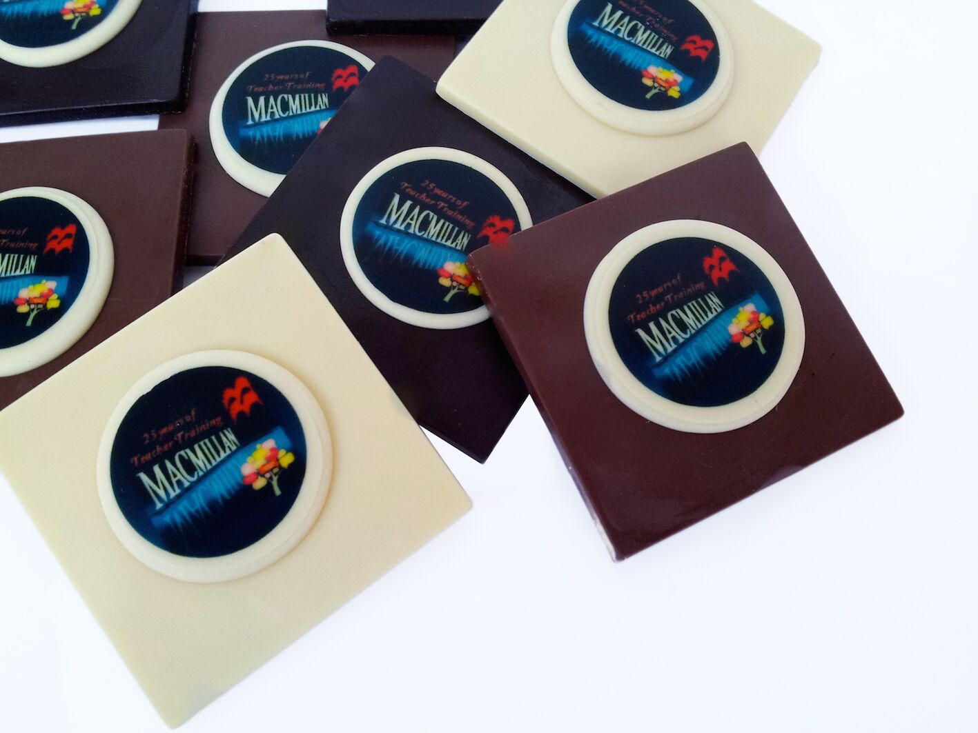 Tabletas de chocolate negro 70% cacao, leche o blanco elaboradas artesanalmente y personalizadas con tu foto o logo corporativo.