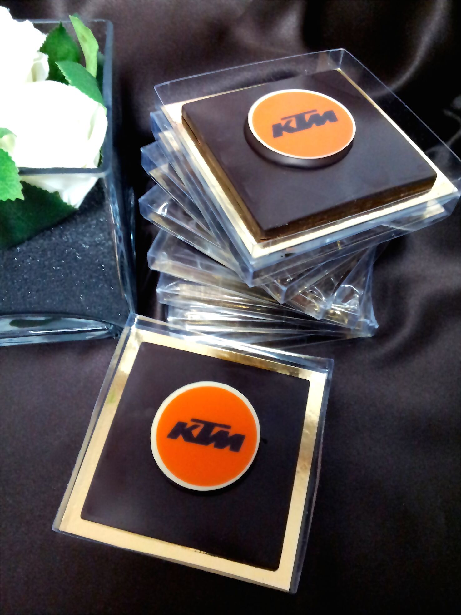 Van presentadas en una caja transparente de 10 x 10 x 1 cm, donde podrƔs lucir el diseƱo personalizado y el buen chocolate.