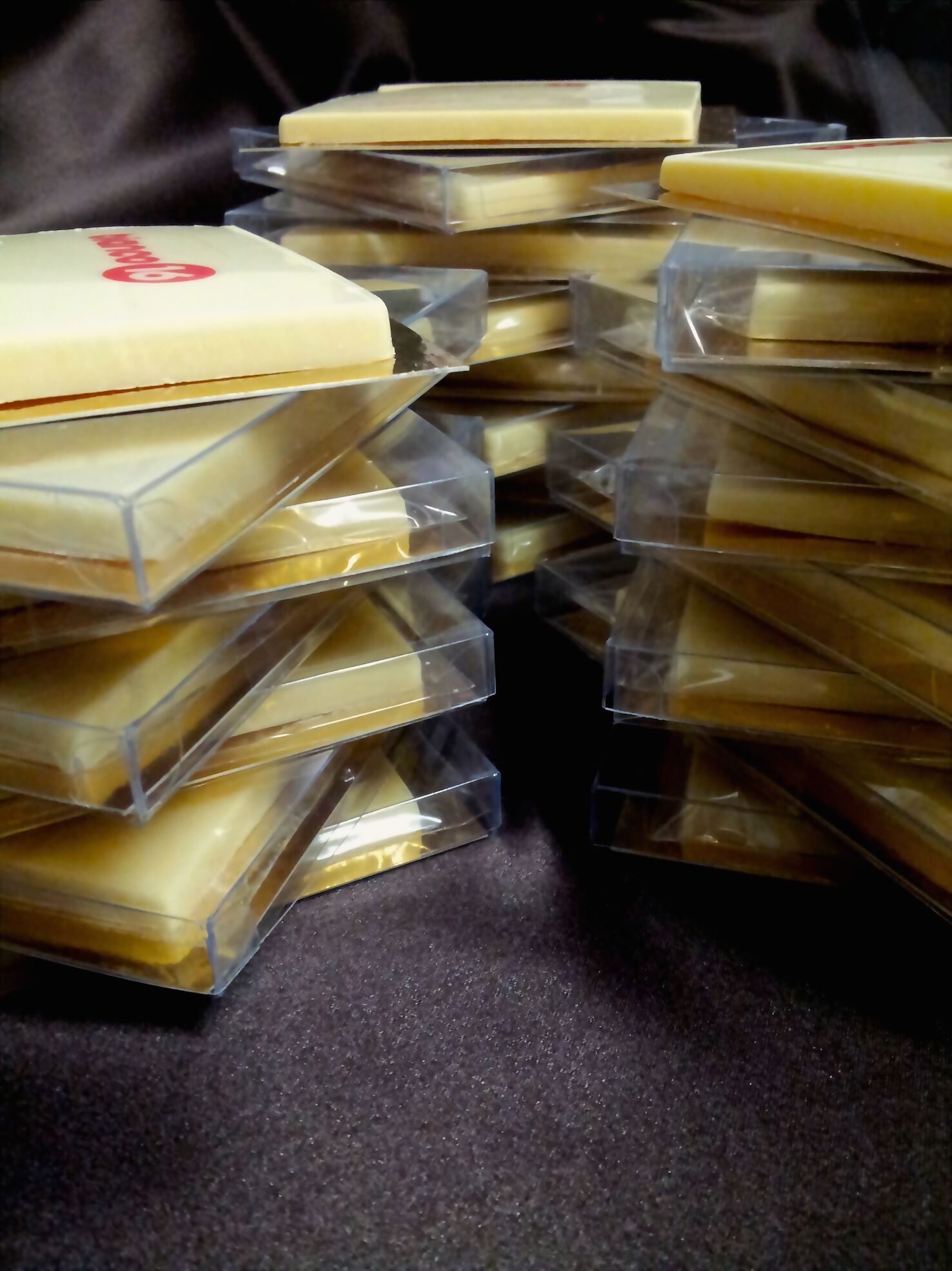Lo servimos encajado individualmente en caja transparente de acetato con base color oro. También se puede servir embolsado en papel de celofÔn transparente y resulta mÔs económico