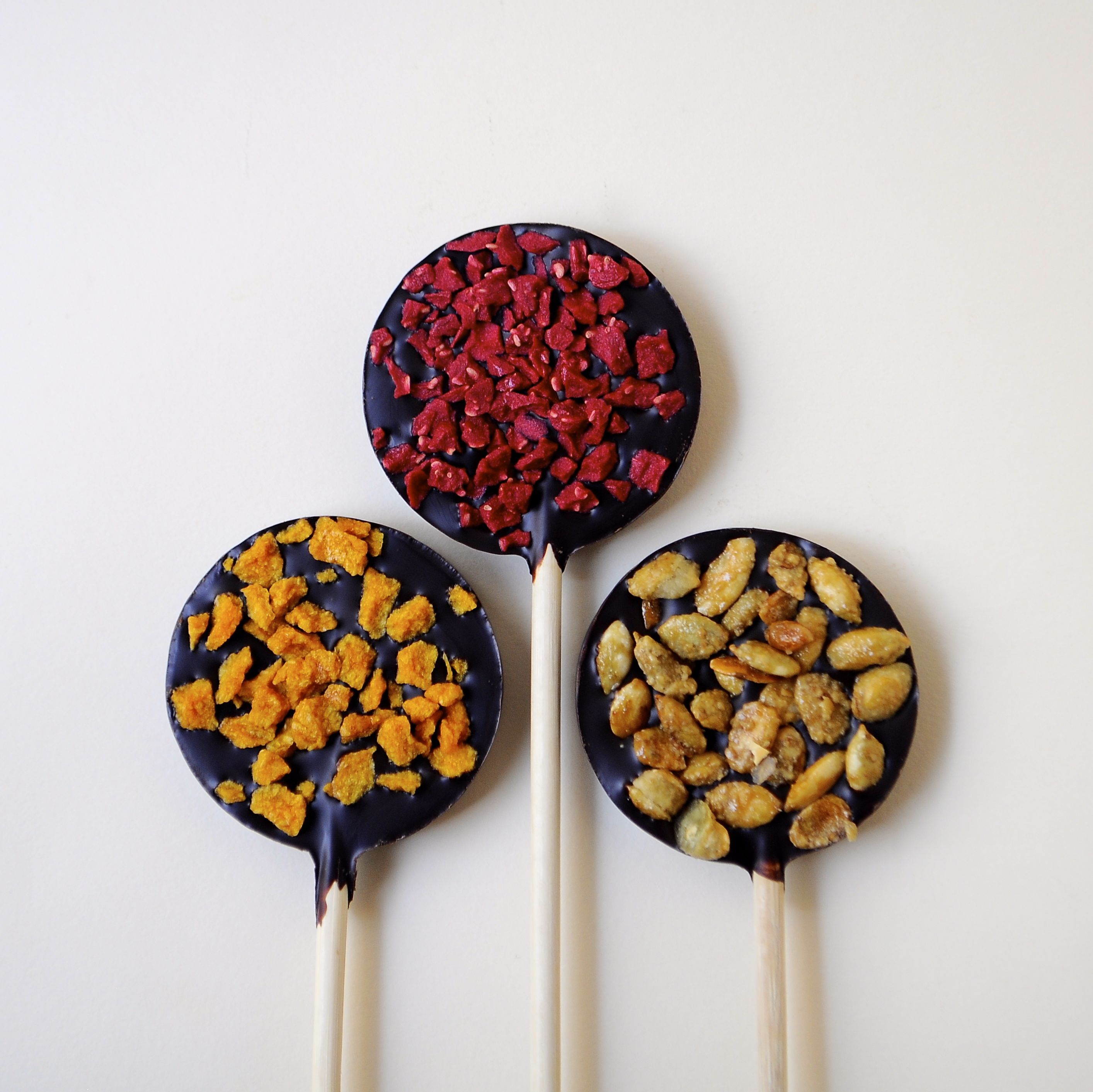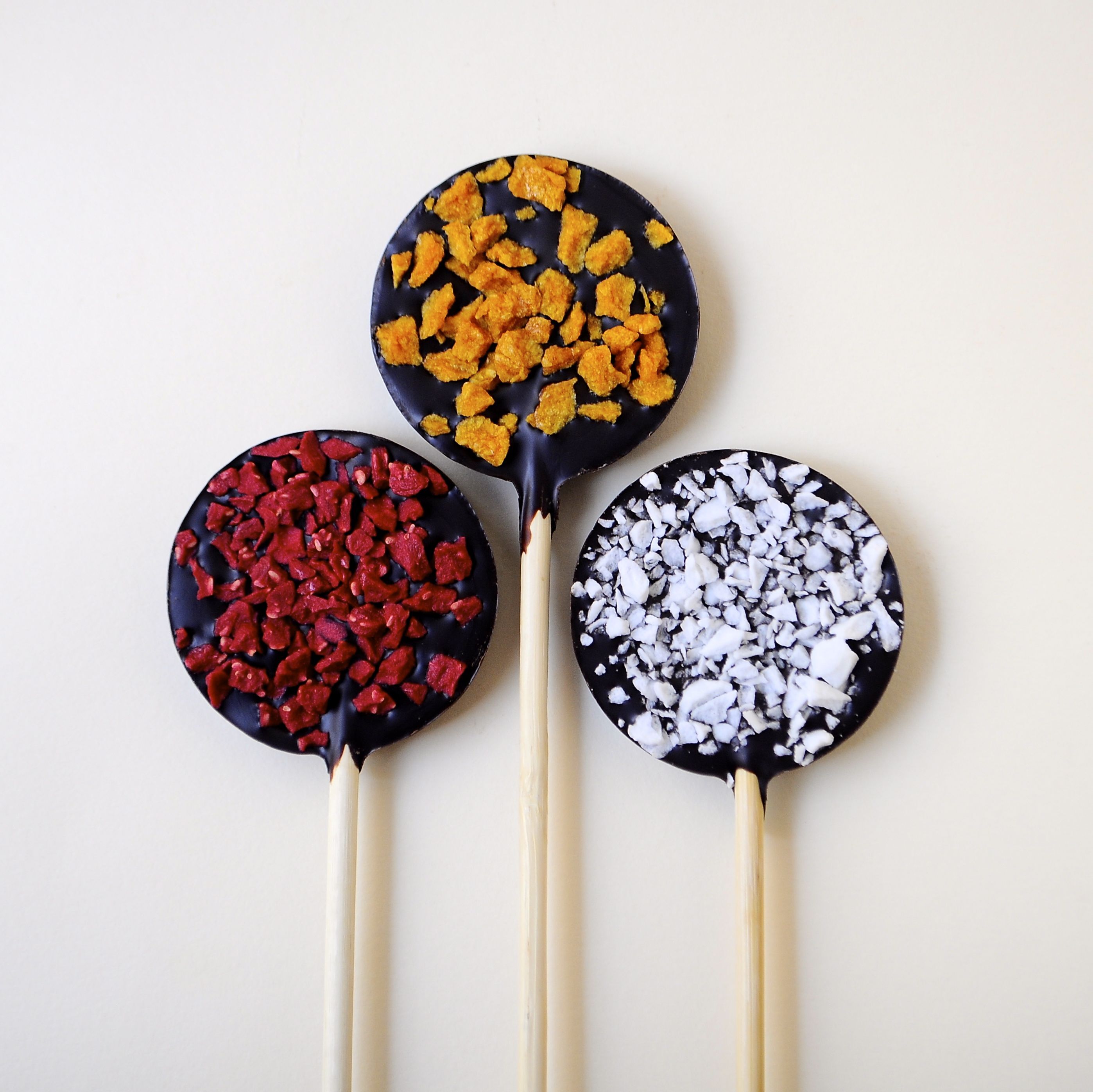 Nuestras piruletas están elaboradas artesanalmente con un 70% de puro cacao.