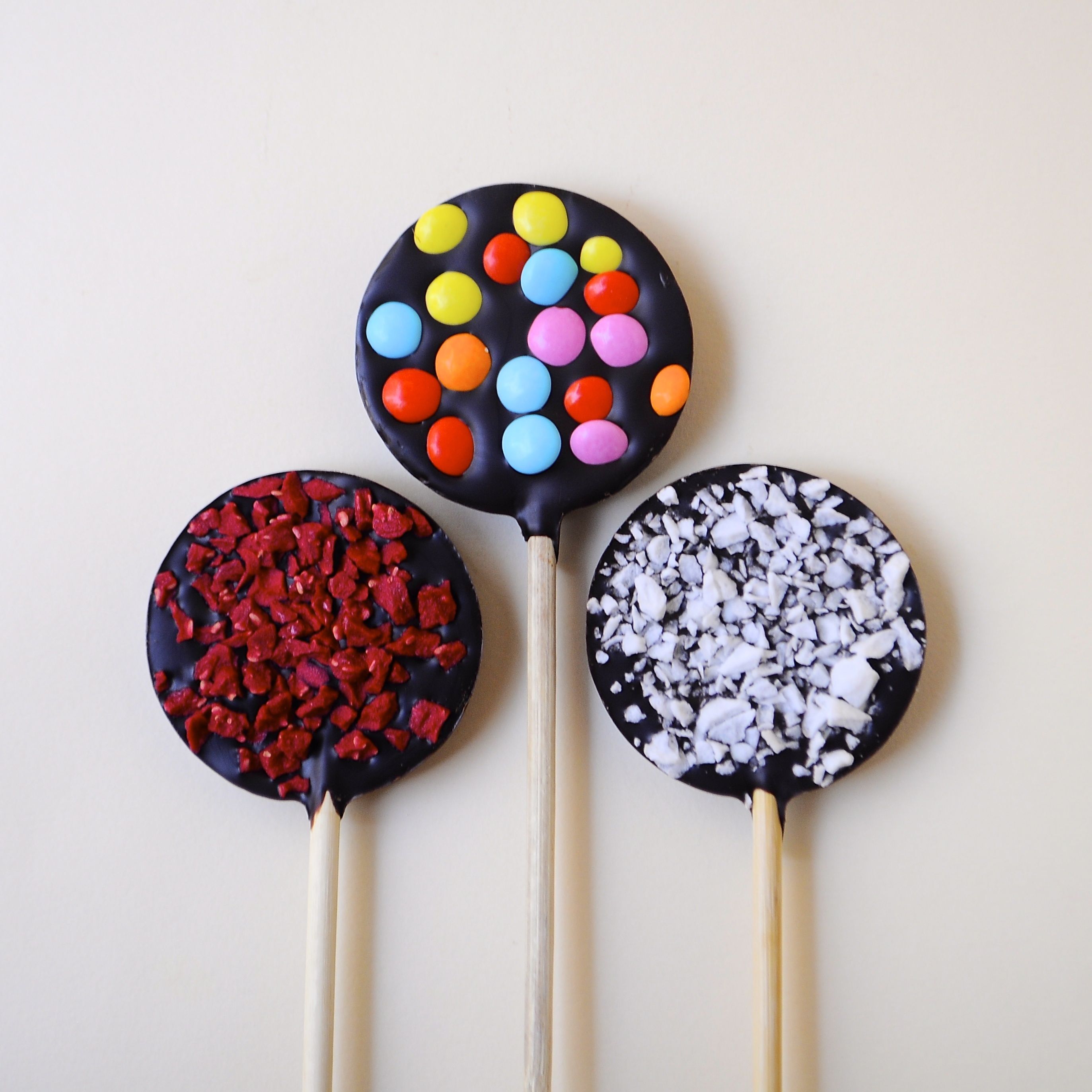 Personaliza tus piruletas de chocolate negro con tus toppings preferidos para todos tus eventos y celebraciones más especiales. ¡Diseña tus piruletas de chocolate!